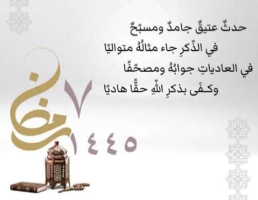 حدث عتيق جامد ومسبح في الذكر جاء مثاله متوالياً في العاديات جوابه ومصحفاً وكفى بذكر الله حقاً هادياً ؟