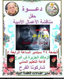 حفل مناقشة الاعمال الابداعية للشاعرة هيام حمزة .. ابنة اضاءات .. يناقشها د.حسام عقل د.عزوز اسماعيل د. رمضان الحضري ..عميد اسرة اضاءات احمد اسماعيل اسماعيل.
