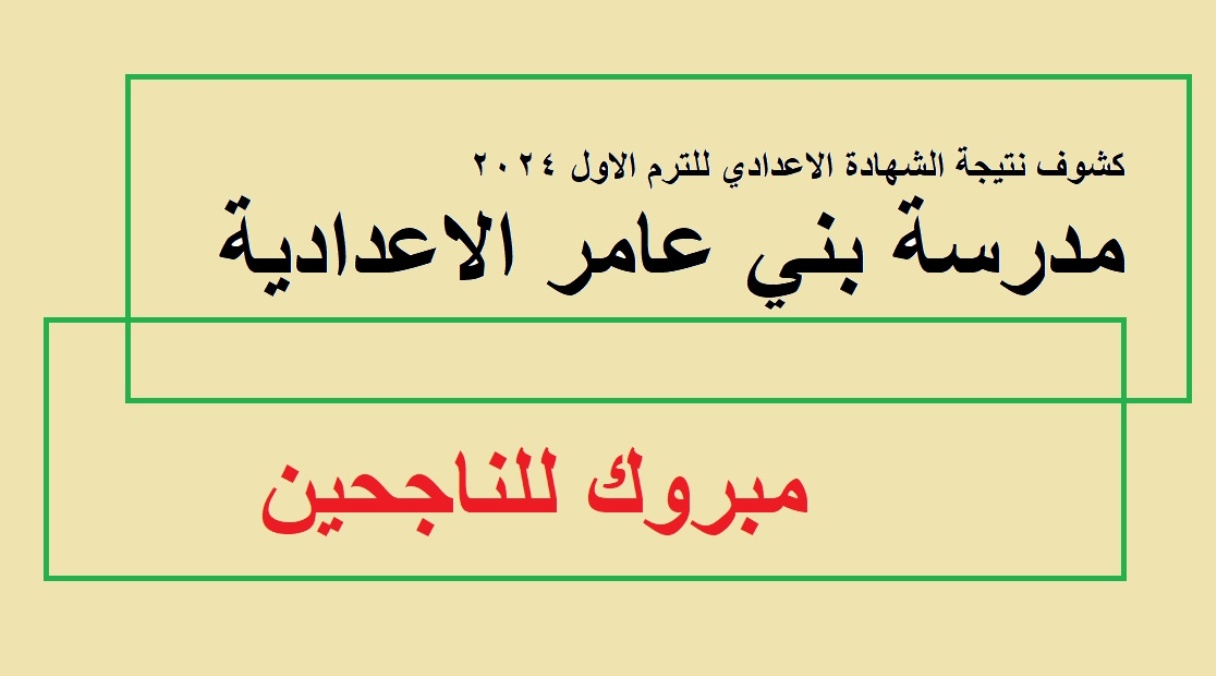 نتيجة مدرسة بني عامر الاعدادية للشهادة الاعدادية بالأسماء للترم الاول للعام الدراسي 2024.
